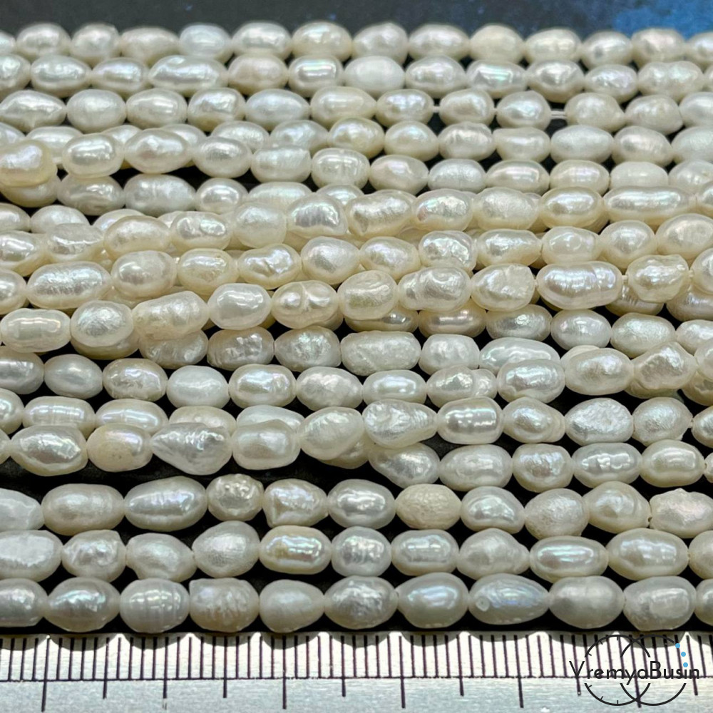 • Жемчуг натуральный речной, овальный ок. 4.5х6 мм, цв. белый (нить, ок. 55 шт.)