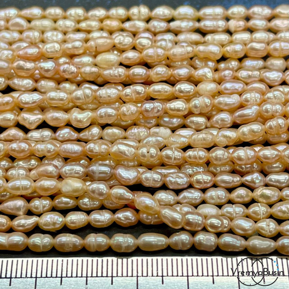 Жемчуг натуральный речной, овальный ок. 4х7 мм, цв. кремовый (нить, ок. 50 шт.)