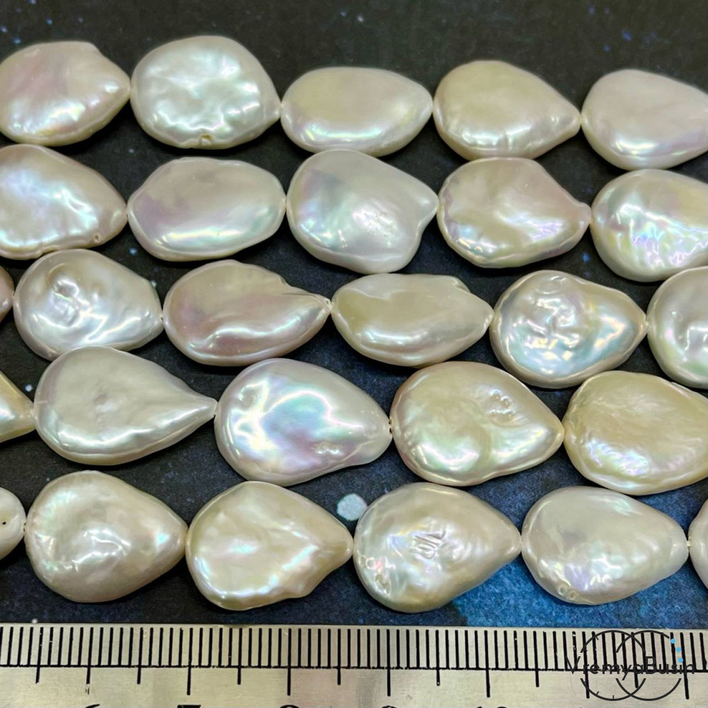 • Жемчуг натуральный речной, капля плоская цв. белый , ок.  13х16      мм (1/2 нити, ок.  12     шт.)