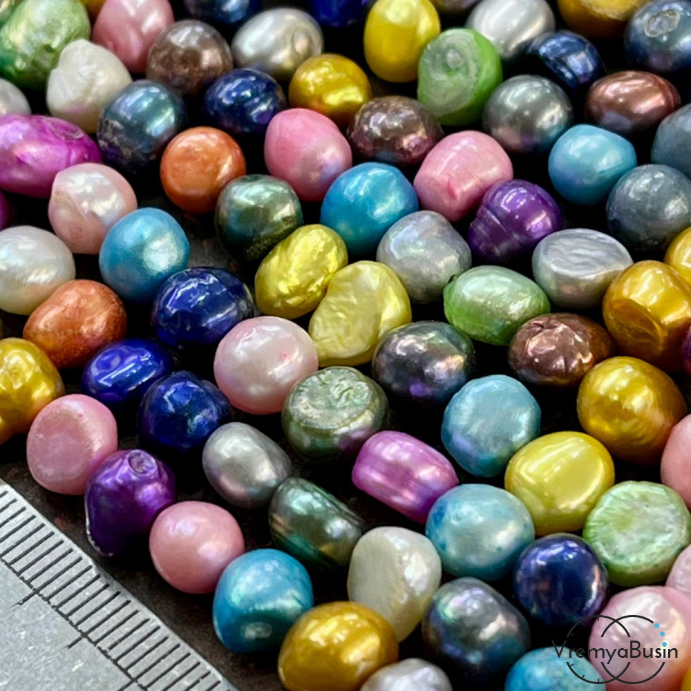Жемчуг натуральный речной, разноцветный микс, округлый ок. 8 мм (нить, ок. 50 шт.)