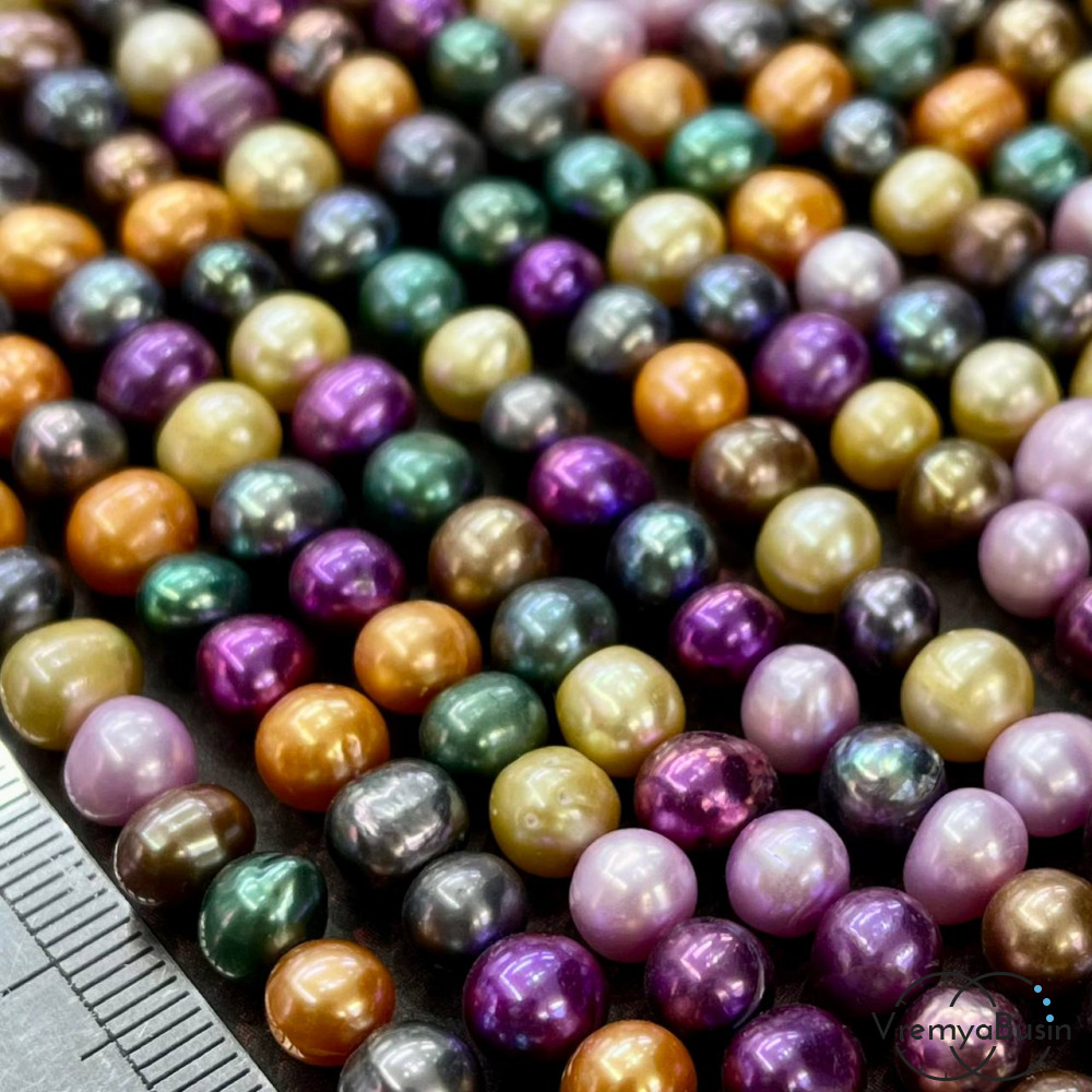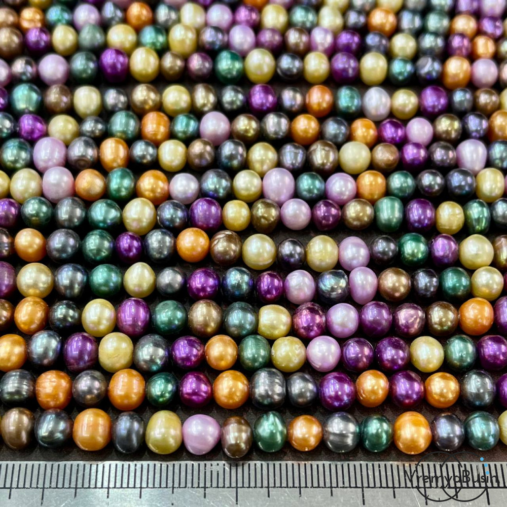 Жемчуг натуральный речной, разноцветный микс, округлый ок. 6-7 мм (нить, ок. 65 шт.)