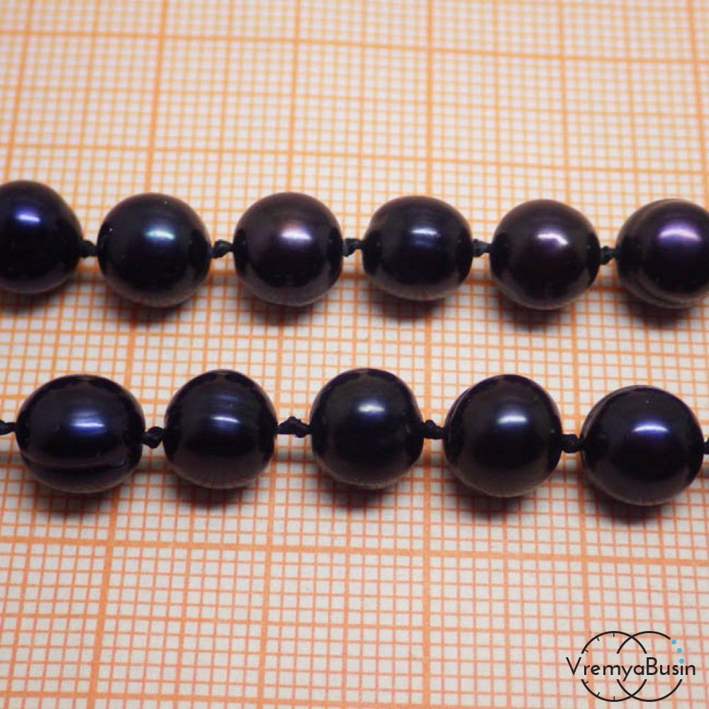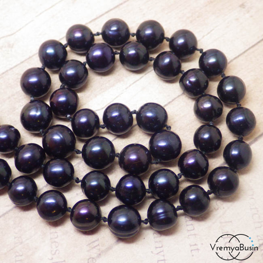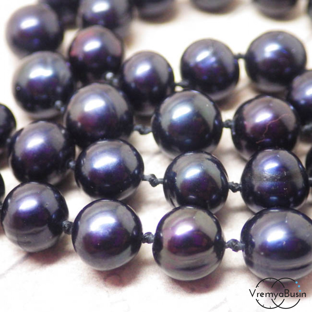Жемчуг натуральный речной. Черный округлый 8 мм