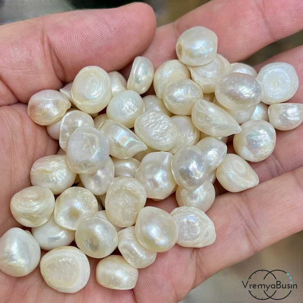 Крупный речной белый натуральный жемчуг, без отверстий, размер разный, ок. 8-12 мм