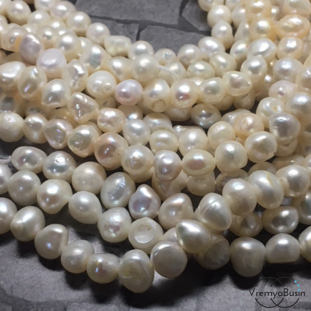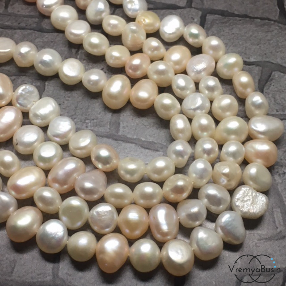 Кремовые и белые жемчужины, овальной формы, немного сплюснутые, отверстие по короткой стороне