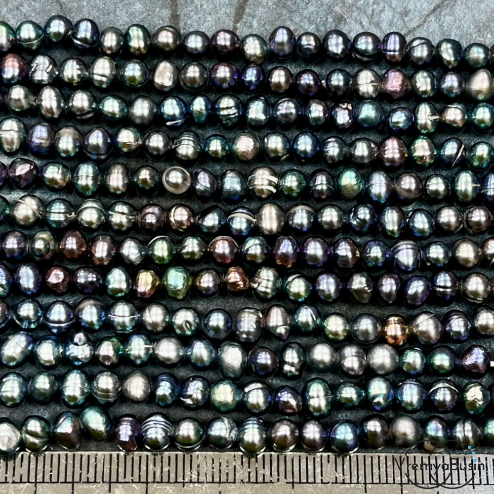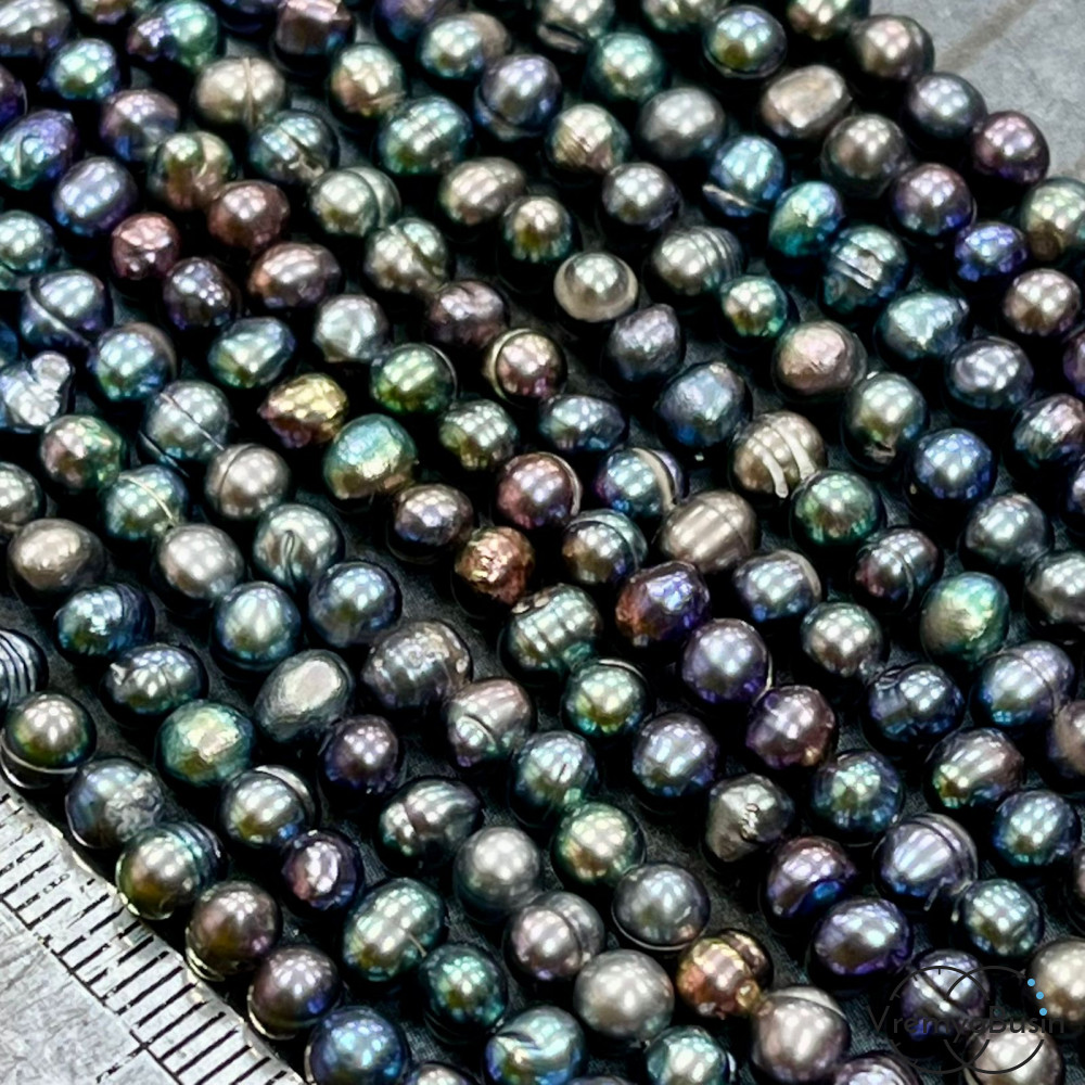 Жемчуг натуральный речной, цв. черный, округлый ок. 4-5 мм (нить, ок. 90 шт.)