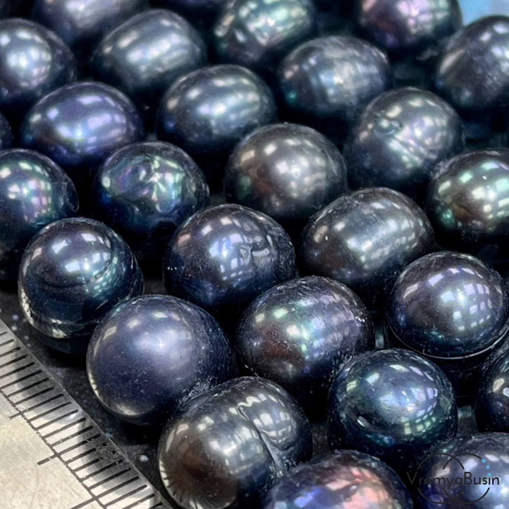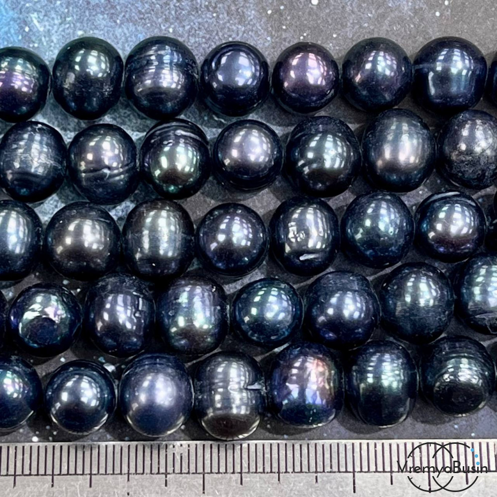 Жемчуг натуральный речной, округлый ок. 11х10 мм, цв. черно-фиолетовый (нить, ок. 35 см.)