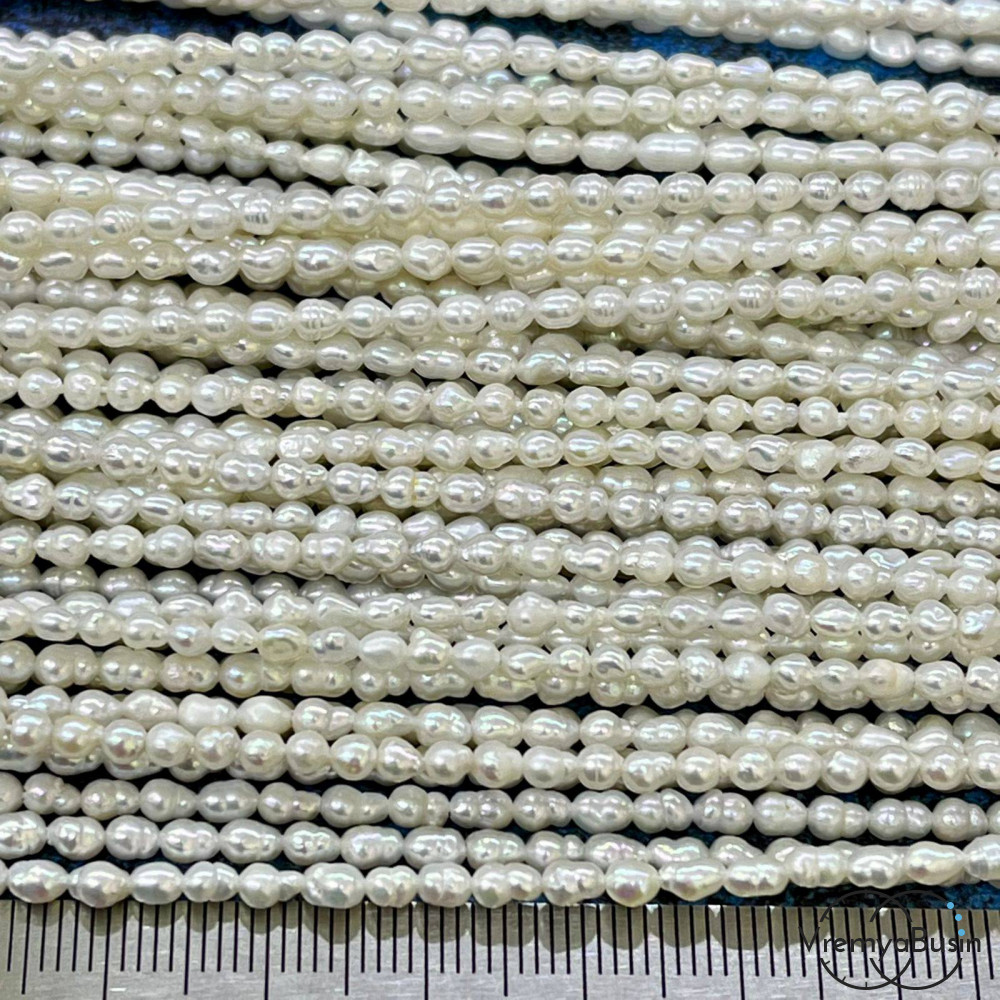 Жемчуг натуральный речной, овальный ок. 2,5х3 мм, цв. белый (нить, ок. 35 см.)