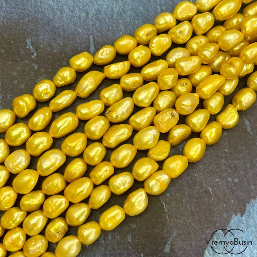 • Жемчуг натуральный речной, барочный ок. 8х10 мм, тонир. цв. желтый (нить, ок.  38 шт.)