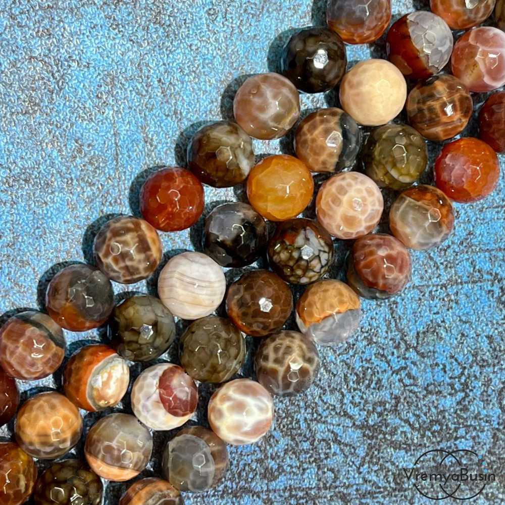 Агат огненный бразильский, шарик граненый 10 мм (1/2 нити, ок. 19 шт.)