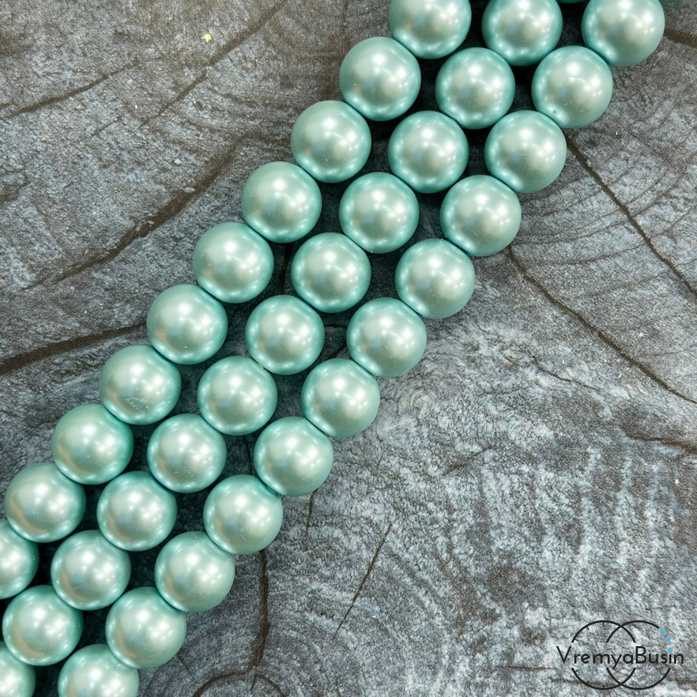 Жемчуг майорка, гладкий шарик 10 мм, цв. бирюзовый (нить, ок. 38 шт.)