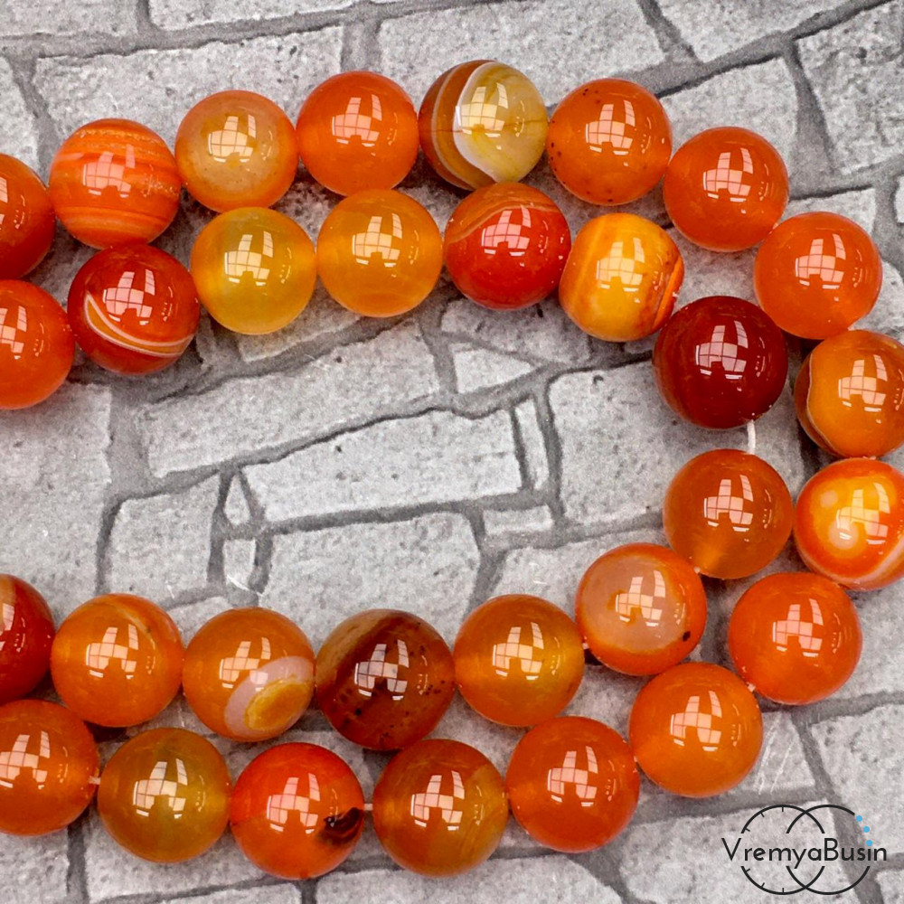 • Агат тонированный, гладкий шарик 12 мм, цв. оранжевый  (1/2 нити, ок. 16 шт.)
