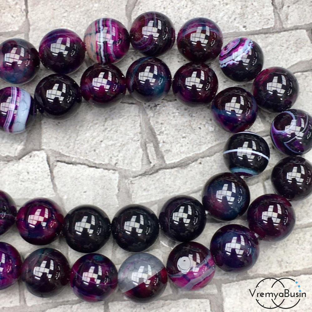 Агат тонированный, гладкий шарик 12 мм, цв. тёмно-фиолетовый (1/2 нити, ок. 16 шт.)