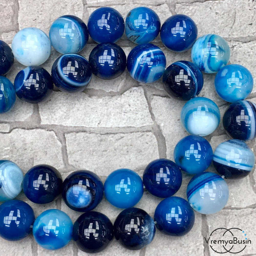 • Агат тонированный, гладкий шарик 12 мм, цв. синий  (1/2 нити, ок. 16 шт.)
