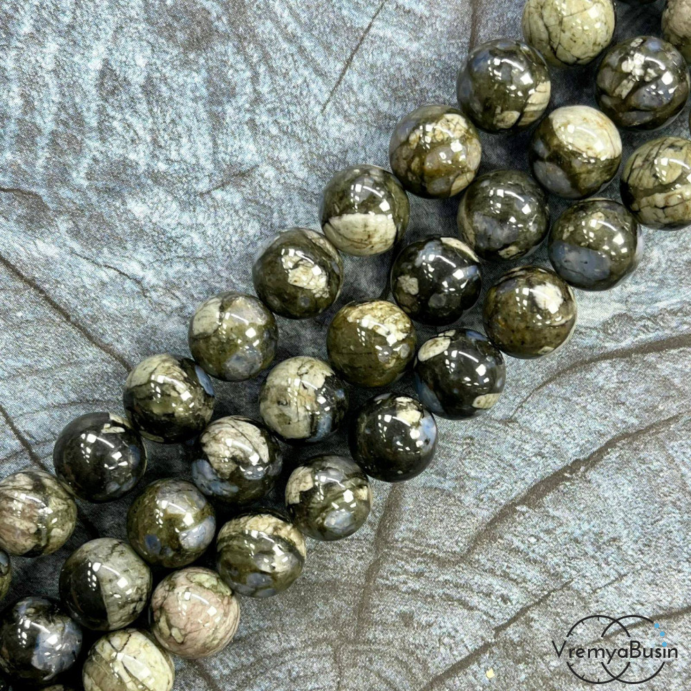• Опал черный, шарик гладкий 12 мм (1/2 нити, ок. 16 шт.)