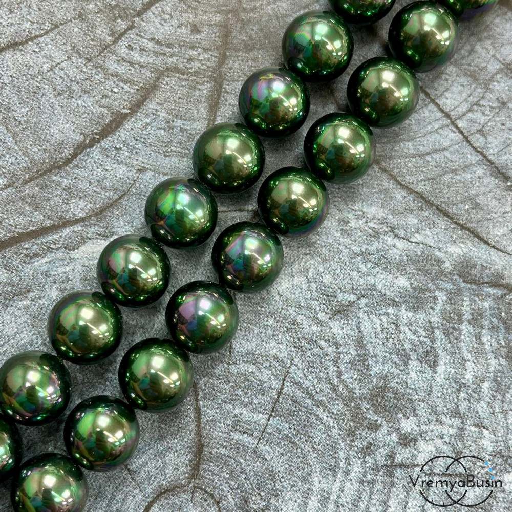 Жемчуг майорка, гладкий шарик 12 мм, цв. изумрудно-черный (нить, ок. 32 шт.)