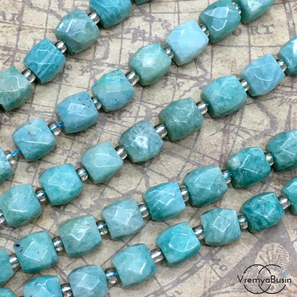 Амазонит, бусины кубики граненые ок. 10 мм (нить, ок. 30 шт.)
