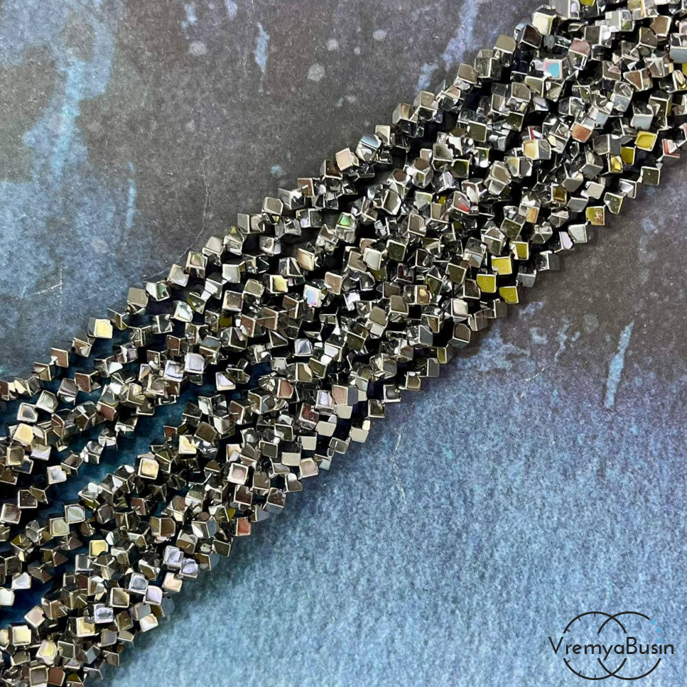 Гематит, бусины ромбики 4 мм, цв. серебро (нить, ок. 90 шт.)
