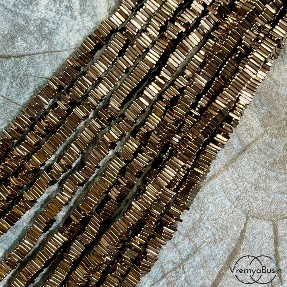 Гематит, чипс квадрат 4х1 мм, цв. коричневый (нить, ок. 300 шт.)
