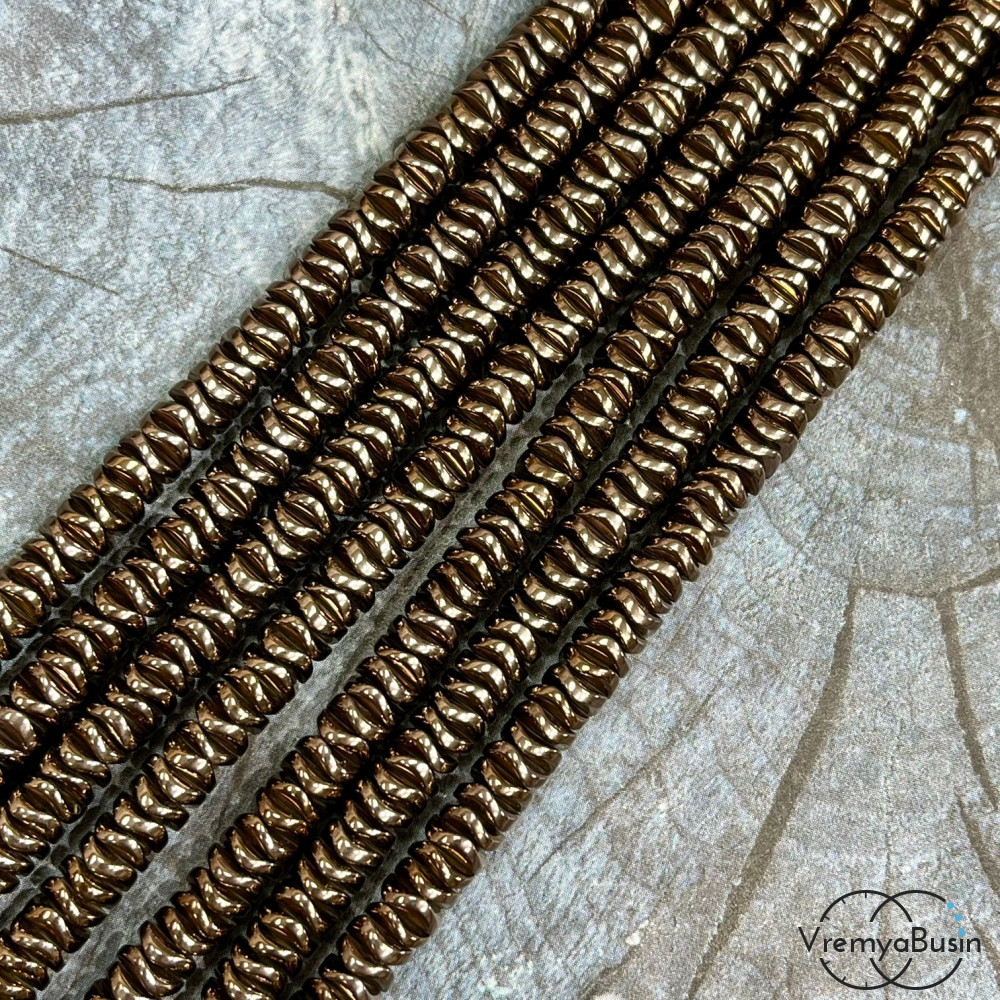 • Гематит, диск изогнутый 2х6 мм, цв. коричневый   (нить, ок. 190 шт.)