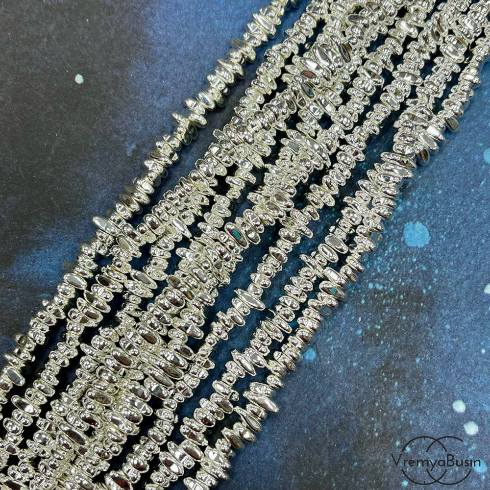 Гематит, галтовка овальная ок. 6-8х3 мм, цв. светлое серебро (нить, ок. 150 шт.)