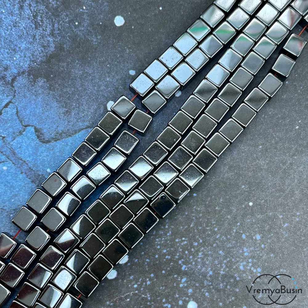 Гематит, кубик 6х6 мм, цв. черный (1/2 нити, ок. 30 шт.)