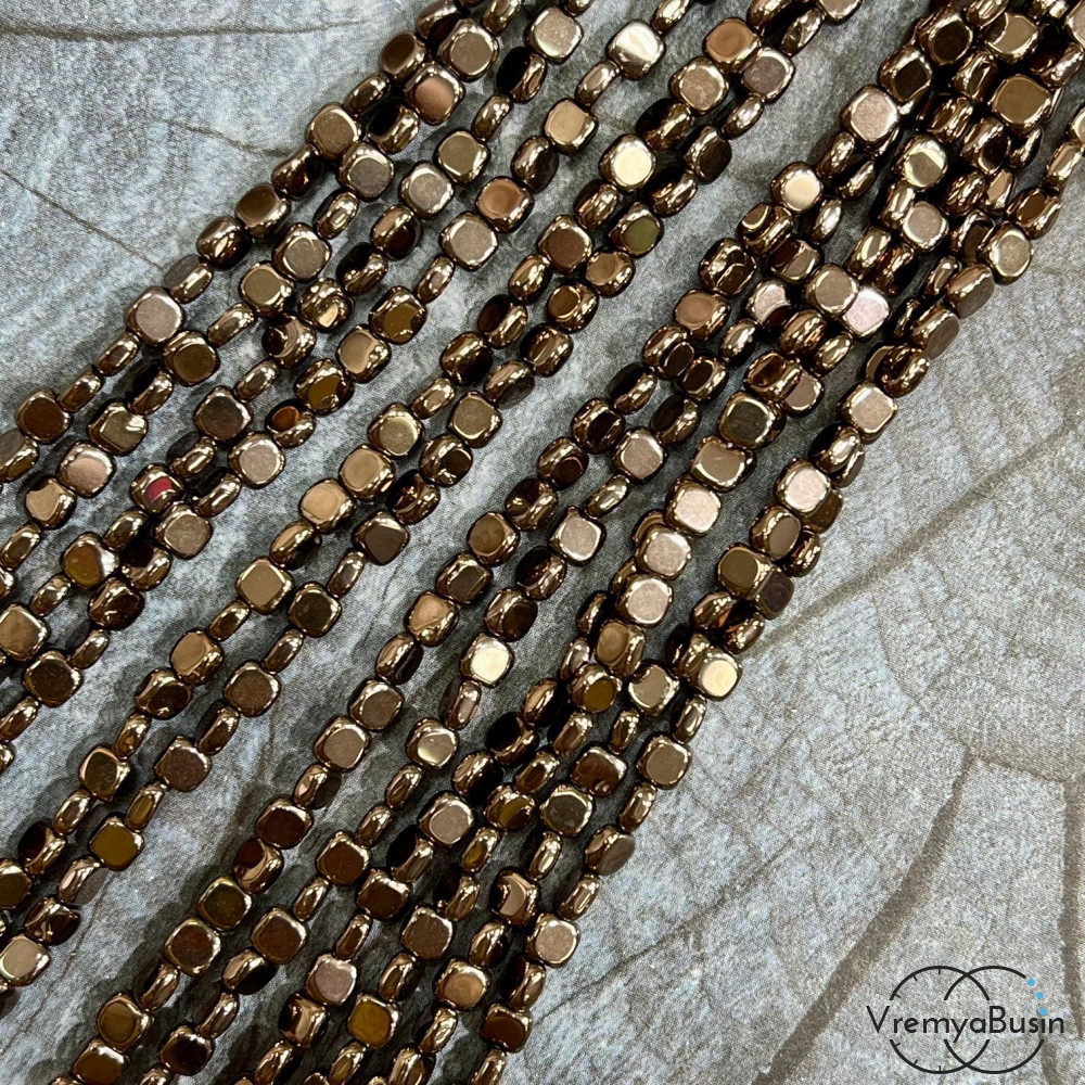 Гематит, квадратик округлый плоский 4х2 мм, цв. коричневый (нить, ок. 90 шт.)