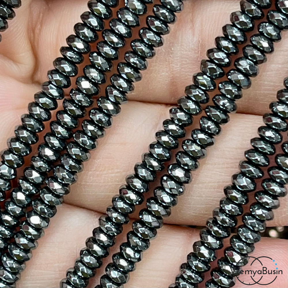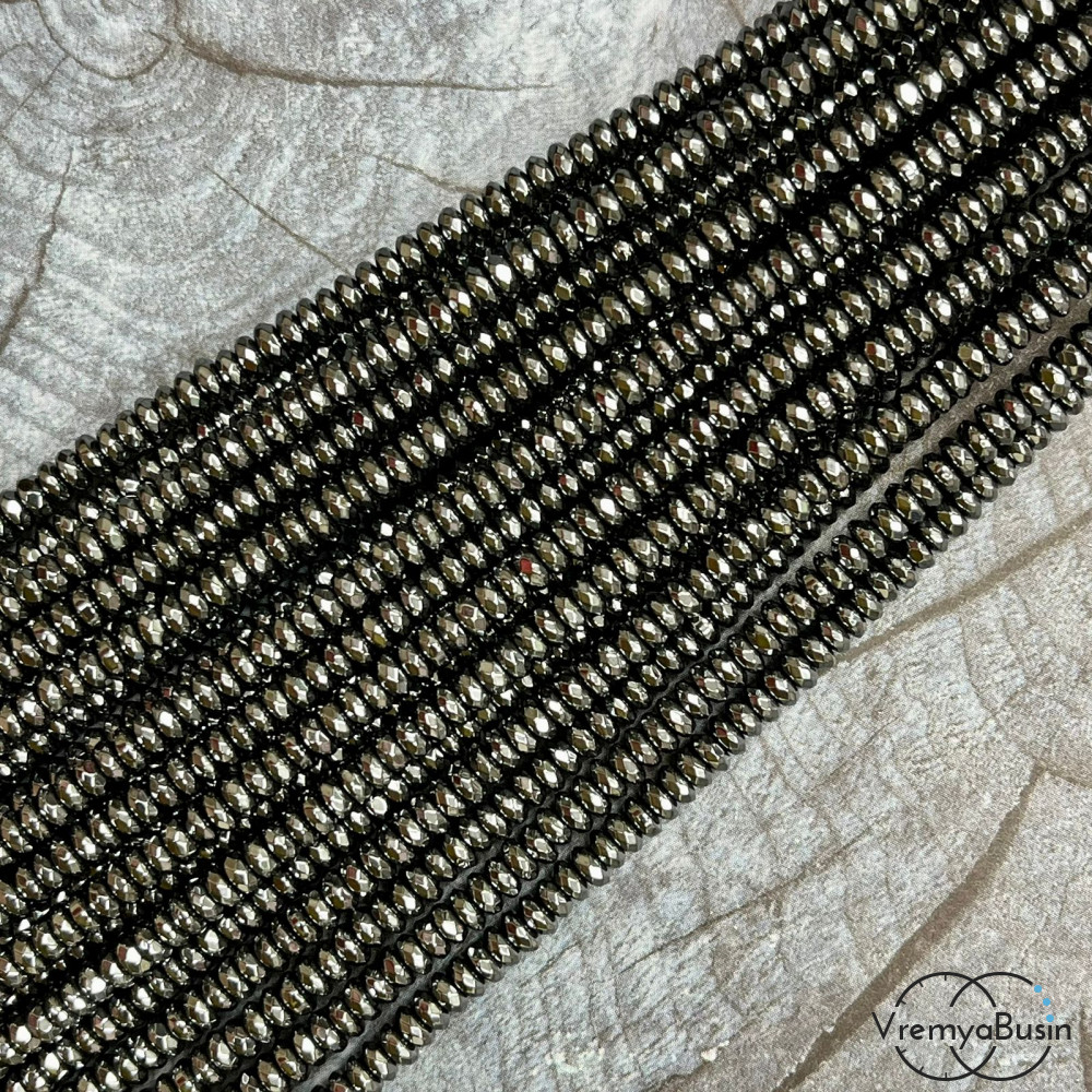 Гематит, рондель граненый 2х4 мм, цв. черный (нить, ок. 180 шт.)