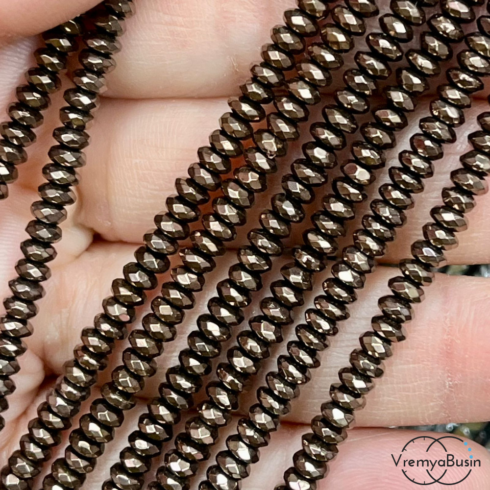 Гематит, рондель граненый 2х4 мм, цв. коричневый (нить, ок. 180 шт.)