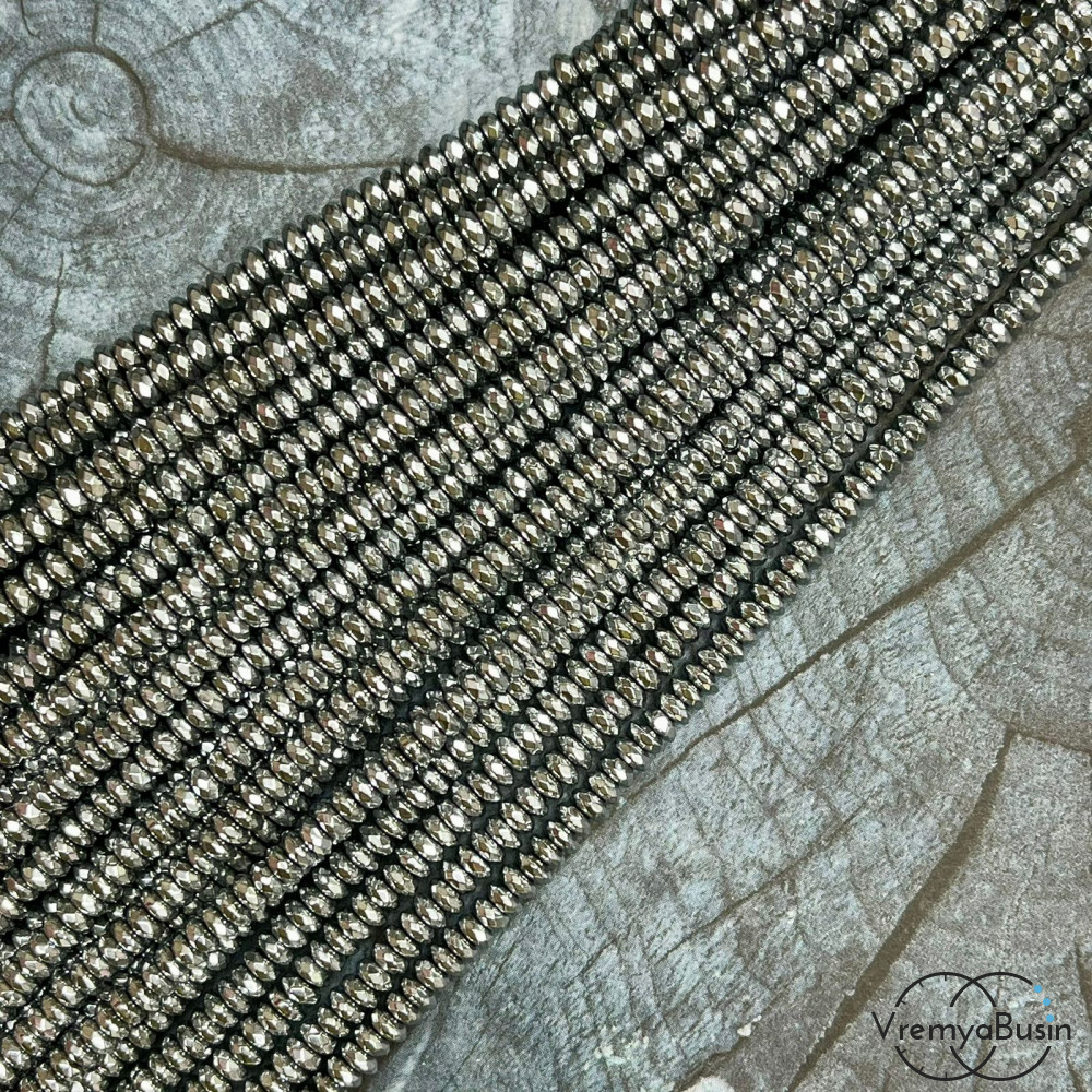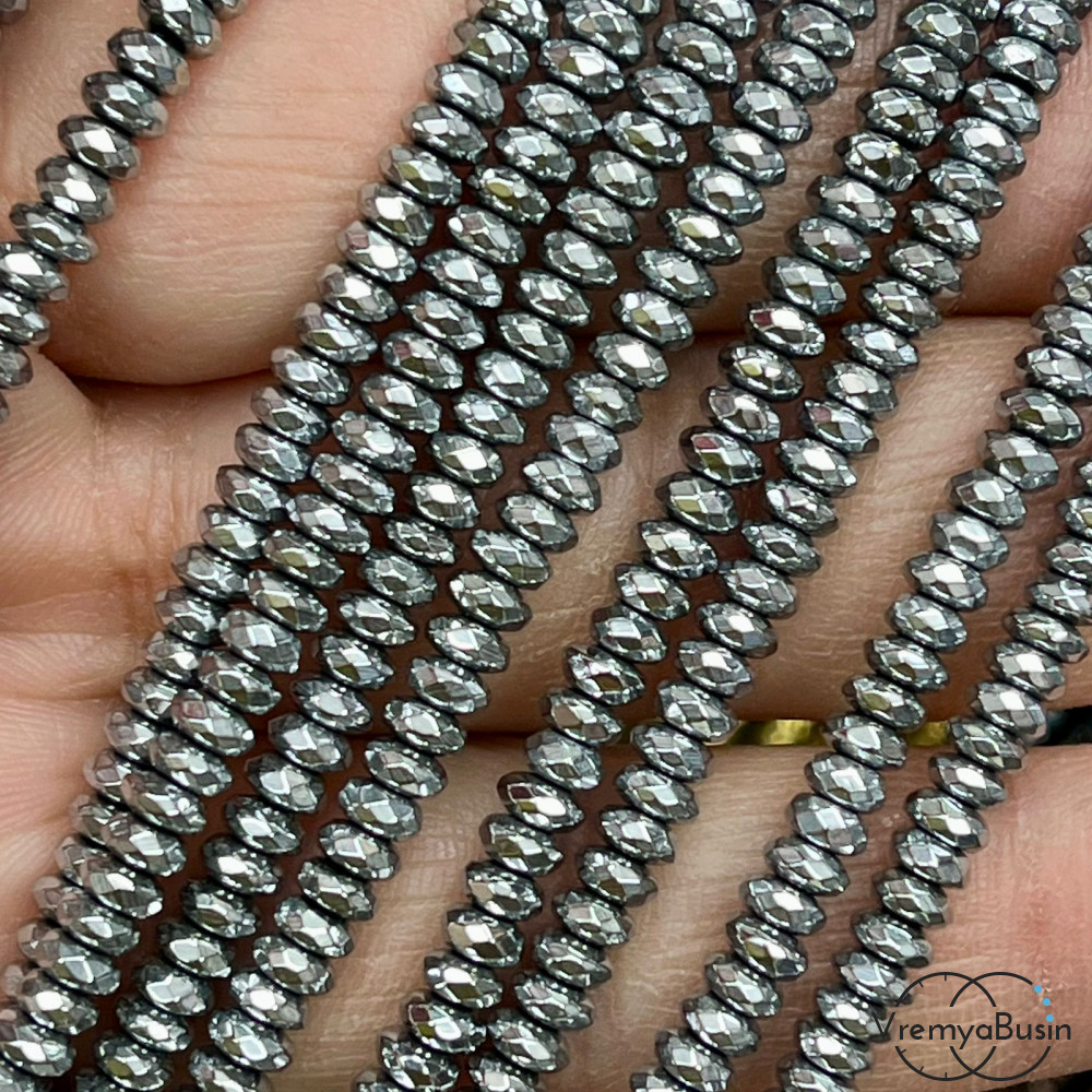Гематит, рондель граненый 2х4 мм, цв. серебро (нить, ок. 180 шт.)