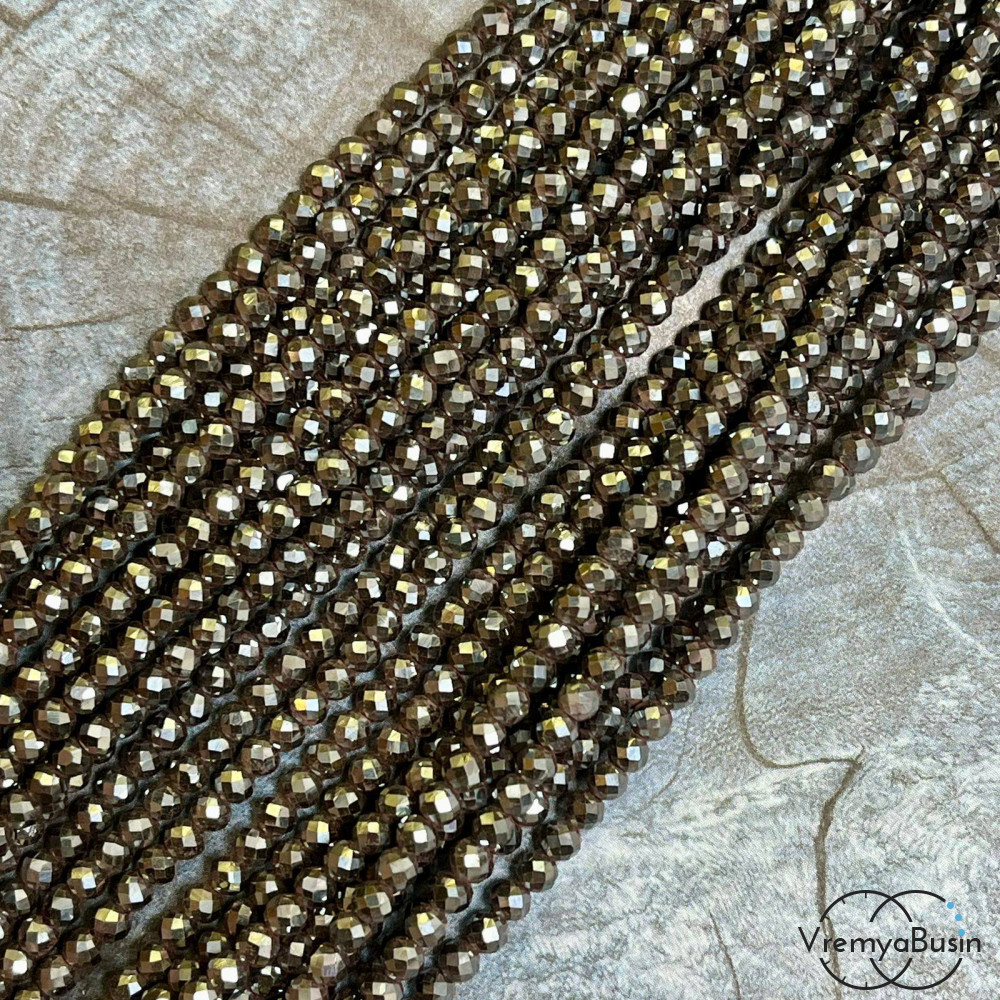 Гематит, шарик 4 мм с искристой мелкой огранкой, цв. черный (нить, ок. 90 шт.)