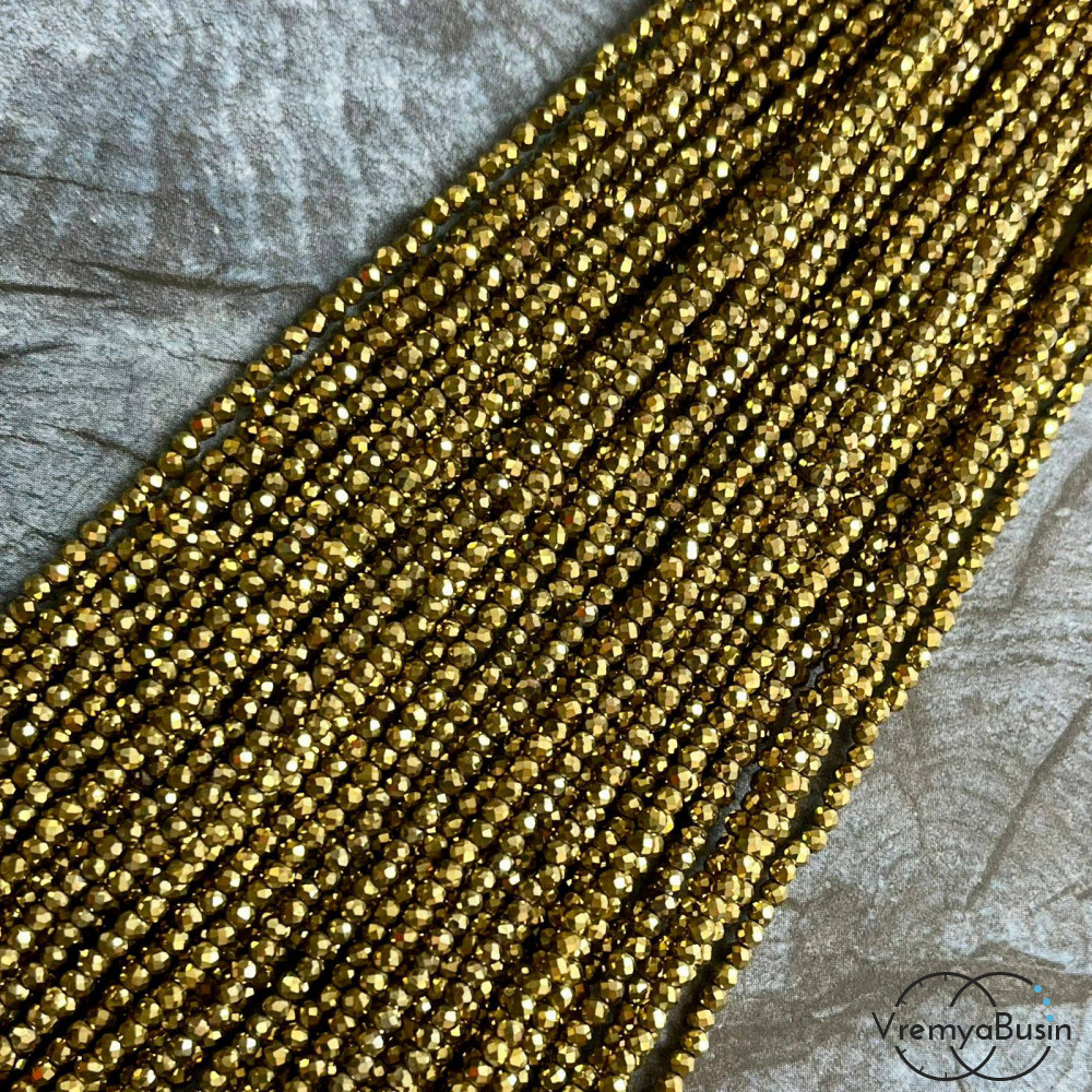 • Гематит, шарик 2 мм с искристой мелкой огранкой, цв. золото (нить, ок. 200  шт.)