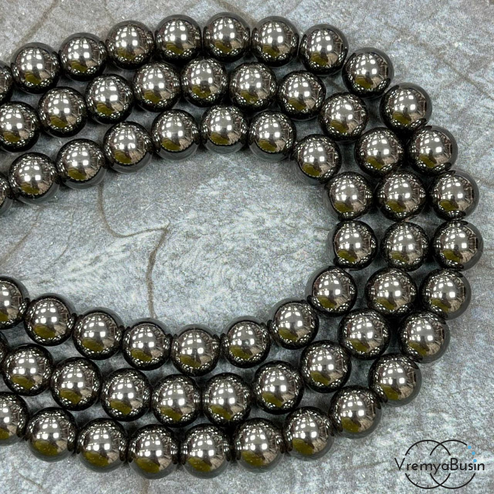 Гематит, шарик гладкий 10 мм, цв. черный (нить, ок. 38 шт.)