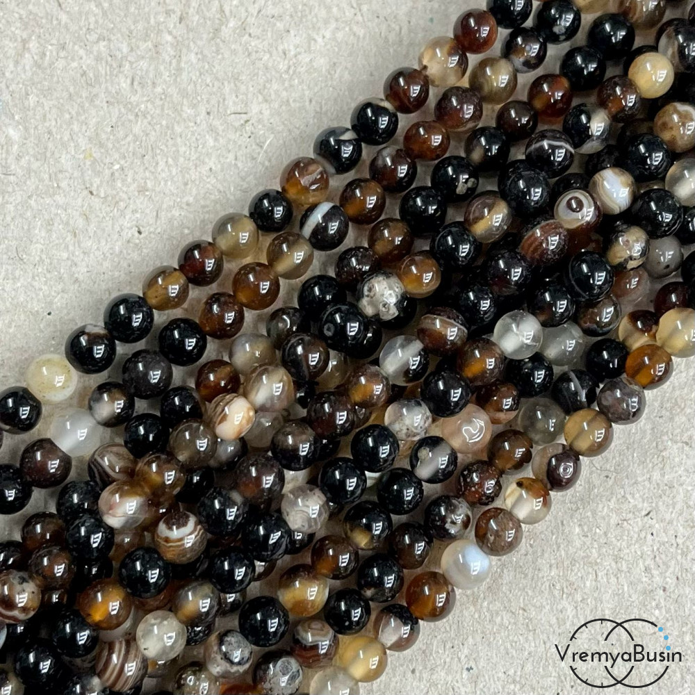 • Агат тонированный, гладкий шарик 4 мм, цв. коричневый   (нить, ок. 90 шт.)