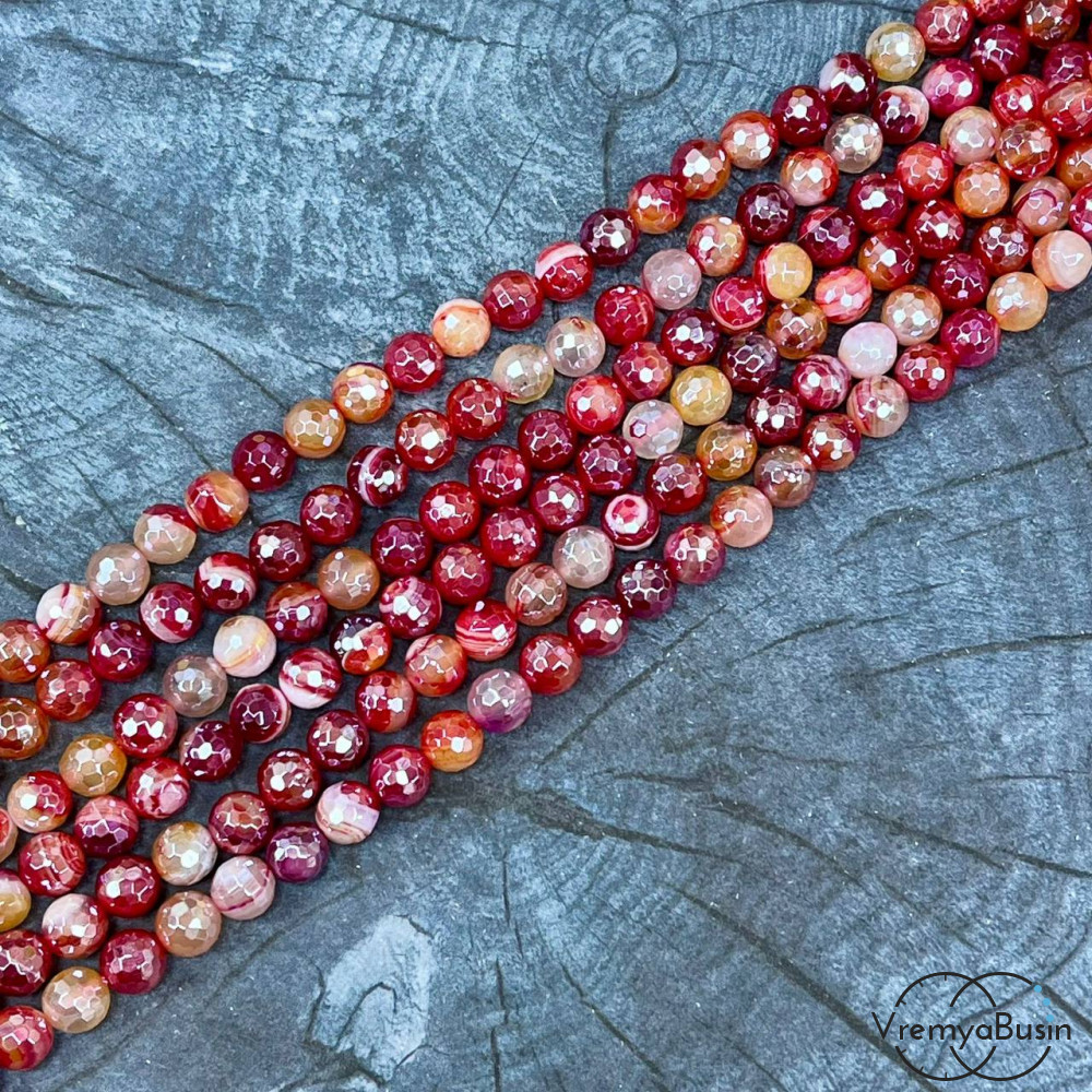 Агат тонир., шарик граненый 6 мм, цв. красный (нить, ок. 65 шт.)