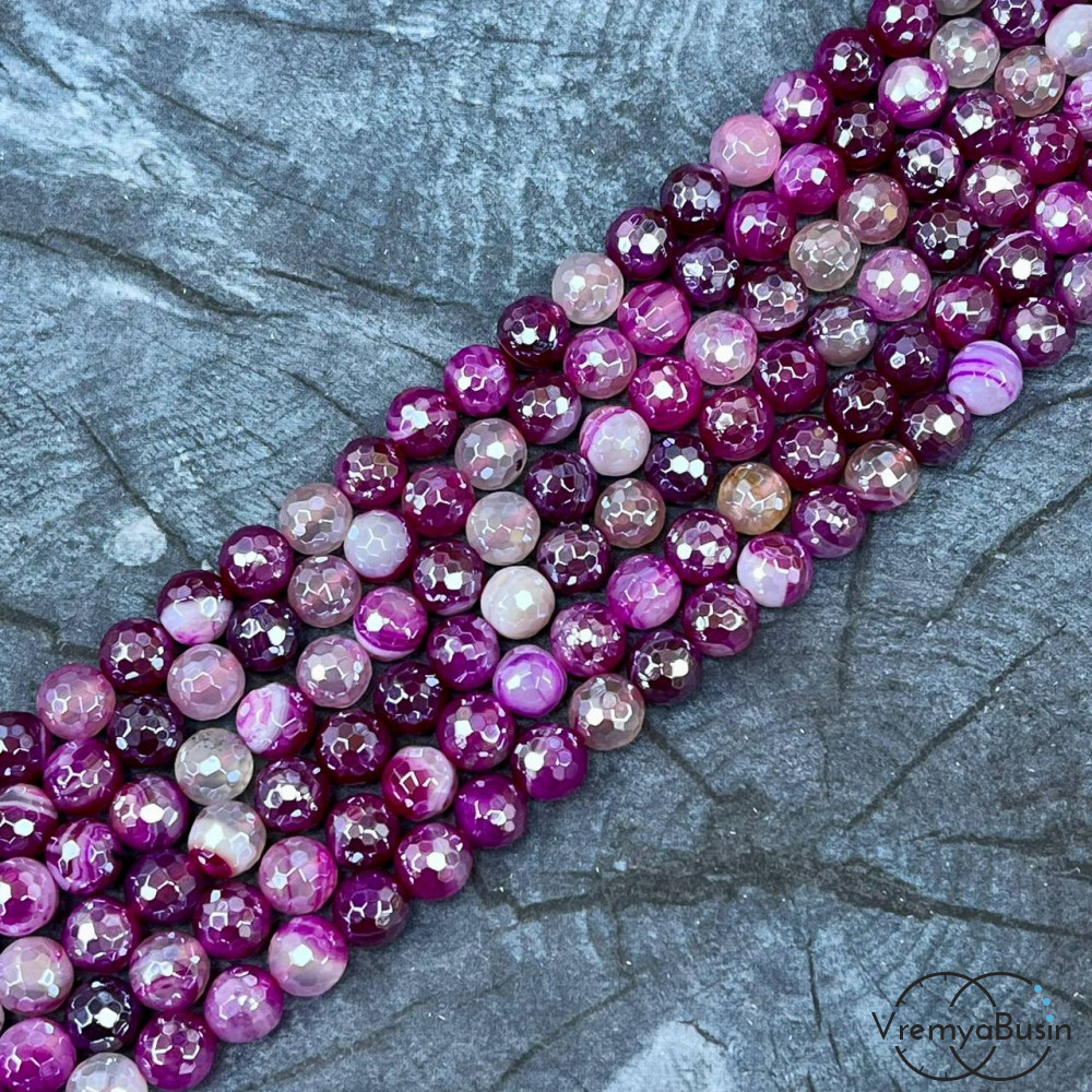 Агат тонир., шарик граненый 6 мм, цв. малиновый (нить, ок. 65 шт.)