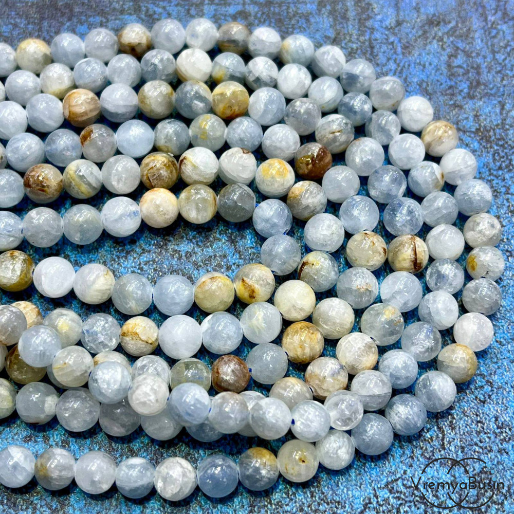 Целестин натур., шарик гладкий 6 мм (1/2 нити, ок. 32 шт.)