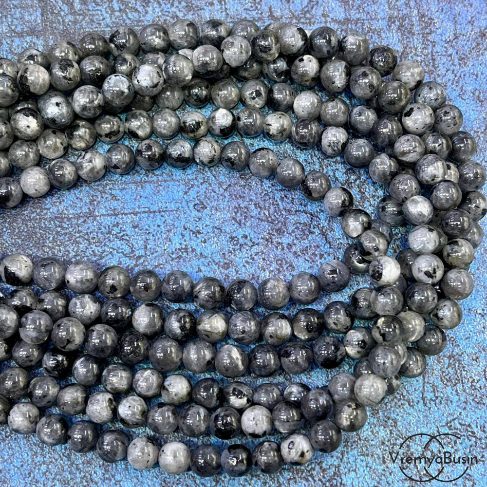 • Ларвикит, черный лабрадор, шарик гладкий 6 мм (1/2 нити, ок. 32 шт.)