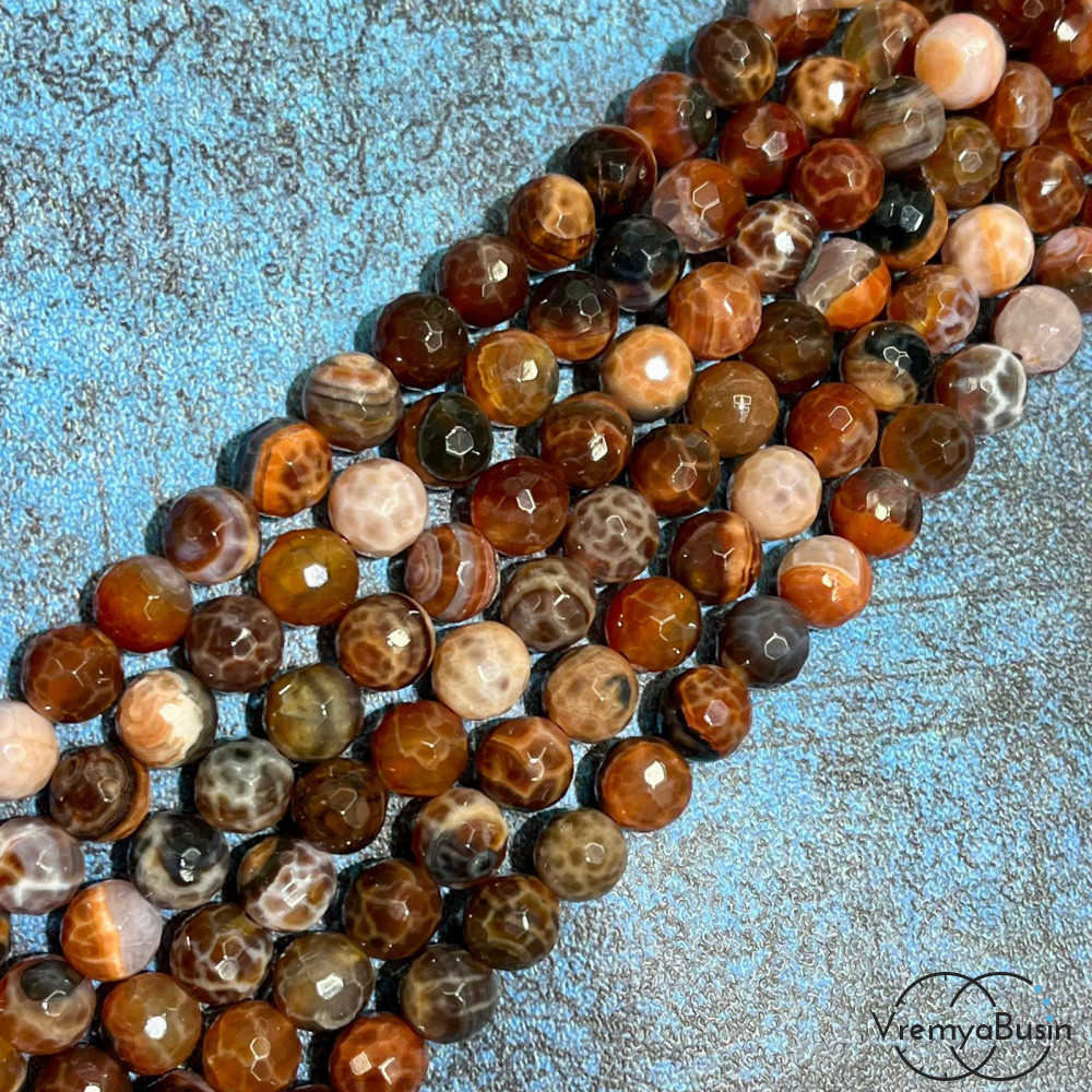 Агат огненный бразильский, шарик граненый 8 мм (1/2 нити, ок. 24 шт.)