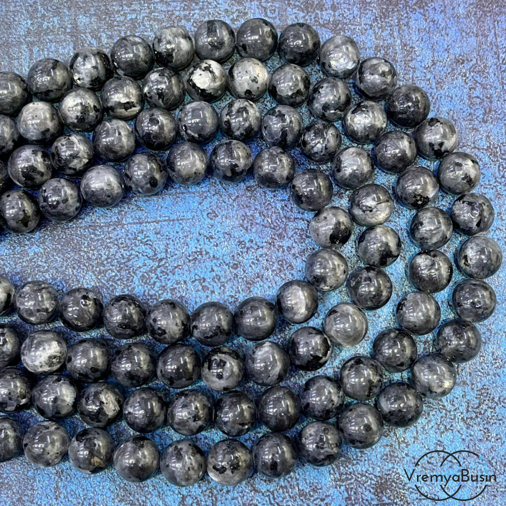 • Ларвикит, черный лабрадор, шарик гладкий 8 мм (1/2 нити, ок. 24 шт.)