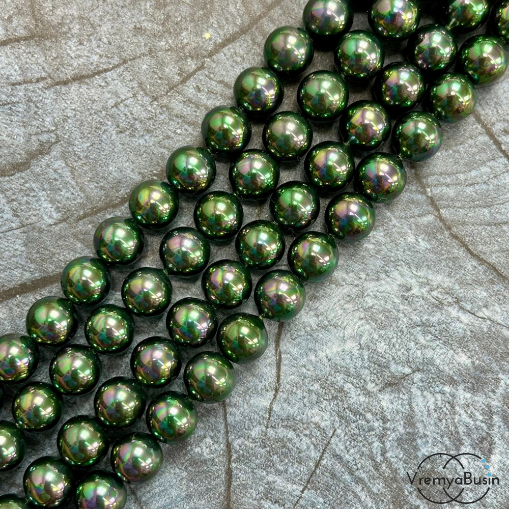 Жемчуг майорка, гладкий шарик 8 мм, цв. изумрудно-черный (нить, ок. 48 шт.)