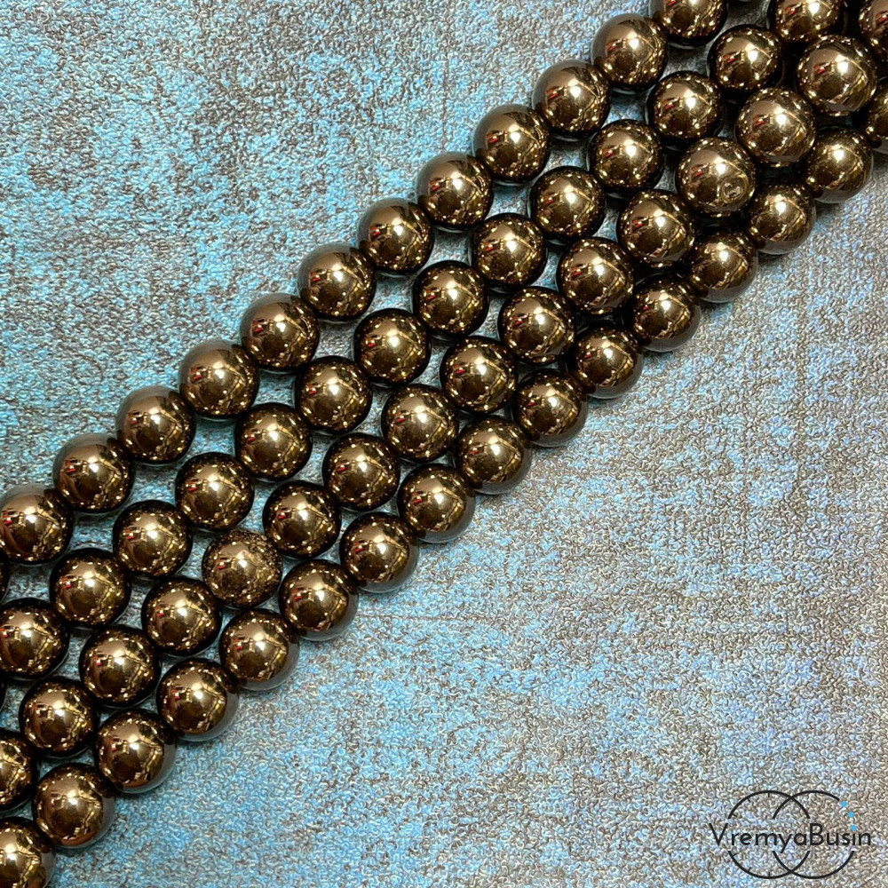 Гематит, шарик гладкий 10 мм, цв. коричневый (нить, ок. 38 шт.)