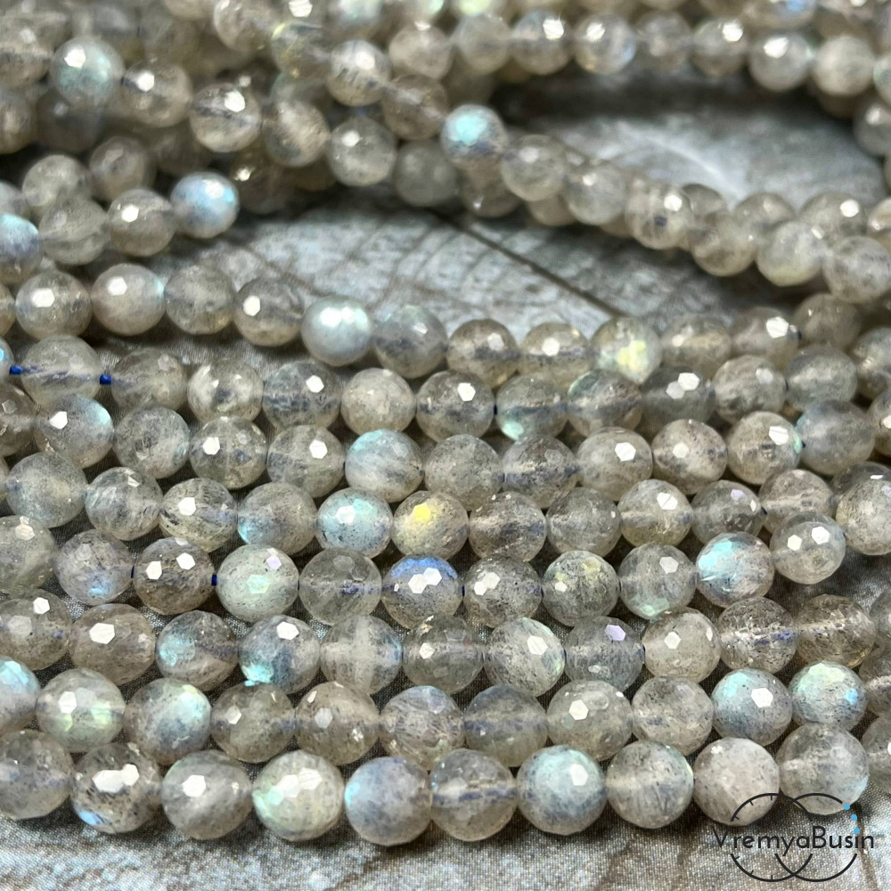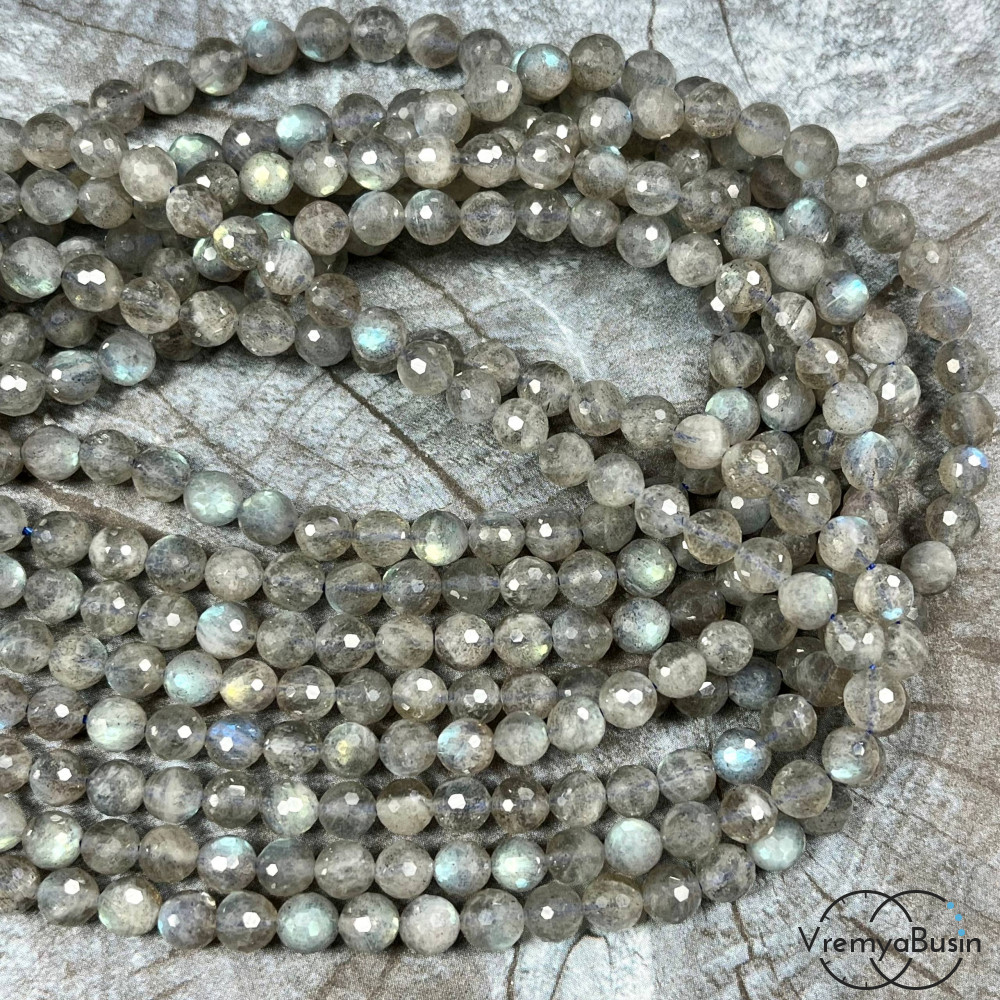 Лабрадор, шарик граненый 6 мм (1/2 нити, ок. 32 шт.)