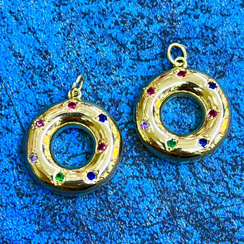 • Подвеска со стразами "Пончик", 20 мм, латунь с позолотой (1 шт.)