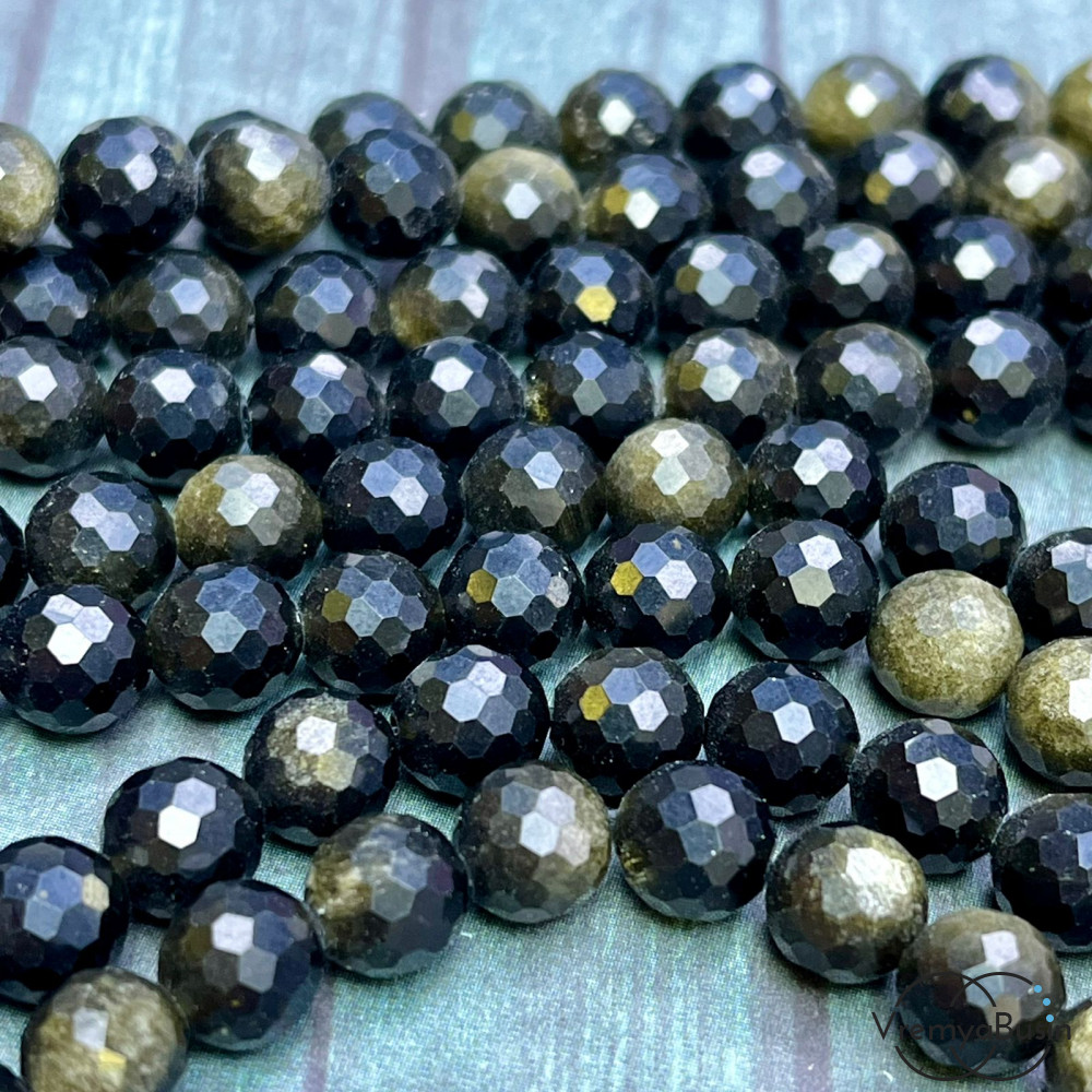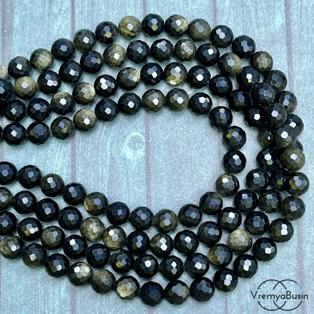 Обсидиан золотой, шарик граненый 8 мм (1/2 нити, ок. 24 шт.)