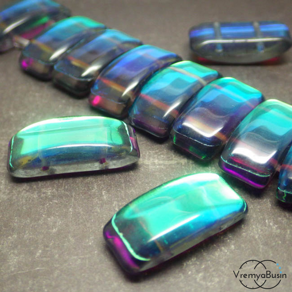 Опал синтетический черный. Бусины гладкие с 2 отверстиями 10х25 мм