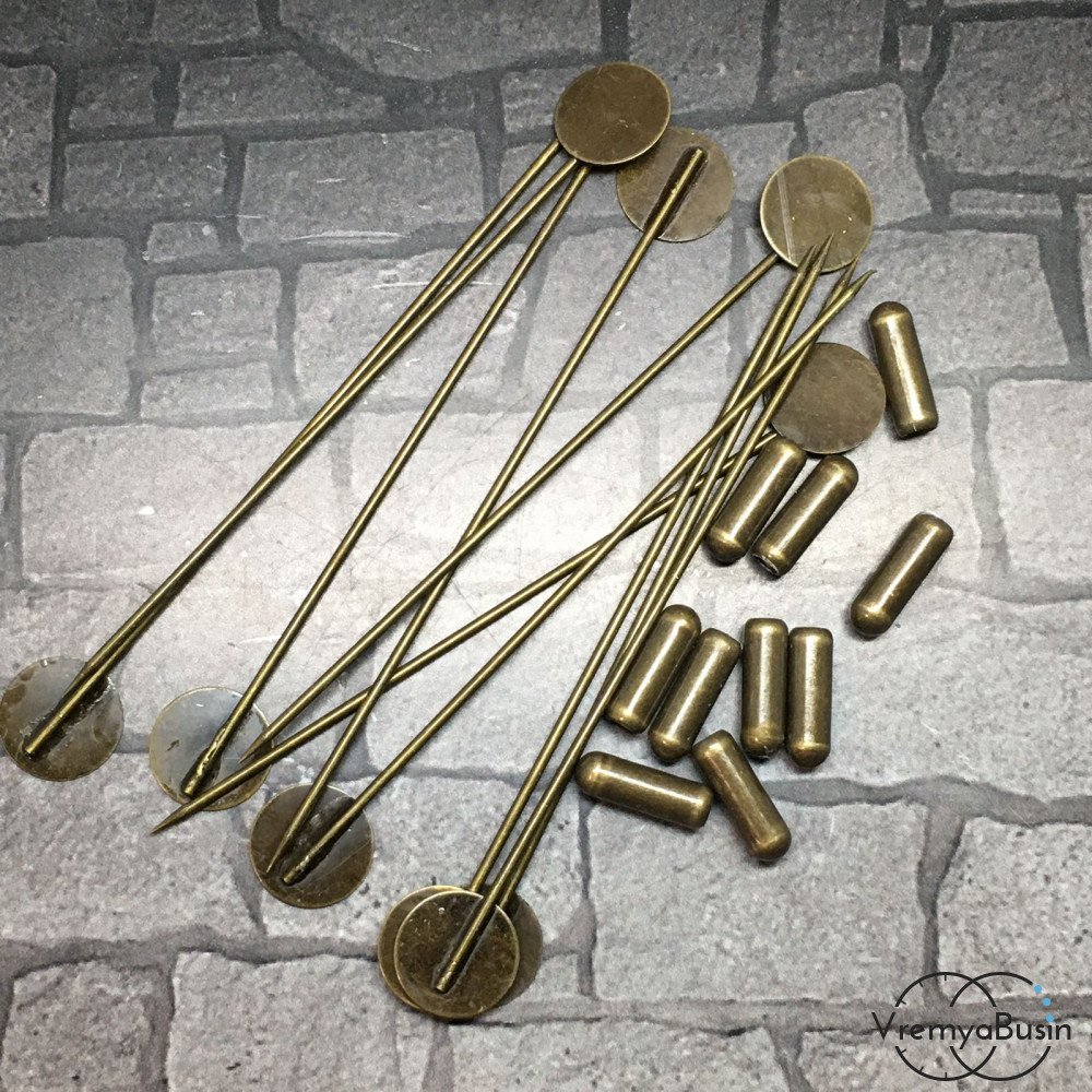 • Основа для броши, игла с площадкой 10 мм, 70 мм, цв. бронза (1 шт.)