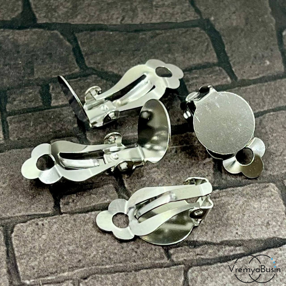 Основа для клипс из нержавеющей стали с площадкой под кабошон 12 мм (1 пара)