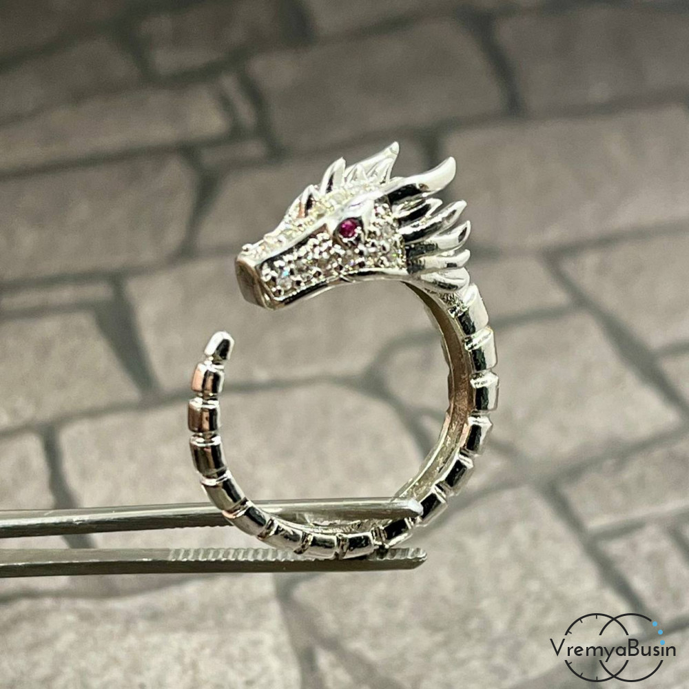 Кольцо "Дракон" из латуни с родиевым покрытием (1 шт.)