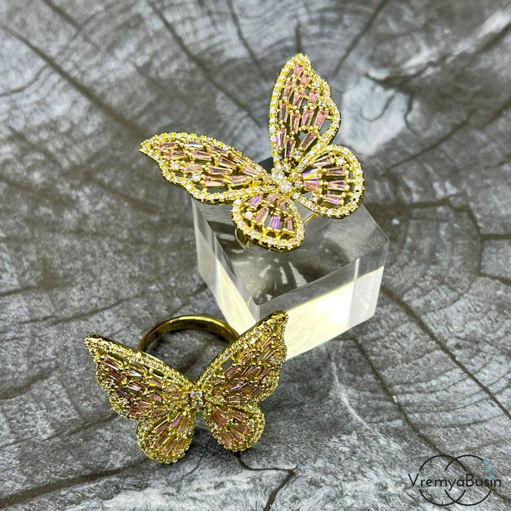 • Кольцо "розовая бабочка", из латуни с позолотой (1 шт.)