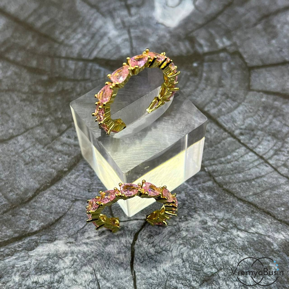 • Кольцо "розовые капельки"  из латуни с позолотой (1 шт.)
